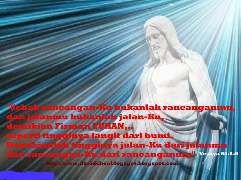 "Sebab rancangan-Ku bukanlah rancangamu, dan jalanmu bukanlah jalan-Ku, demikian firman Tuhan,..Seperti tingginya langit dari bumi. Demikianlah tingginya jalan-Ku dari jalanmu dan rancangan-Ku dari rancanganmu."